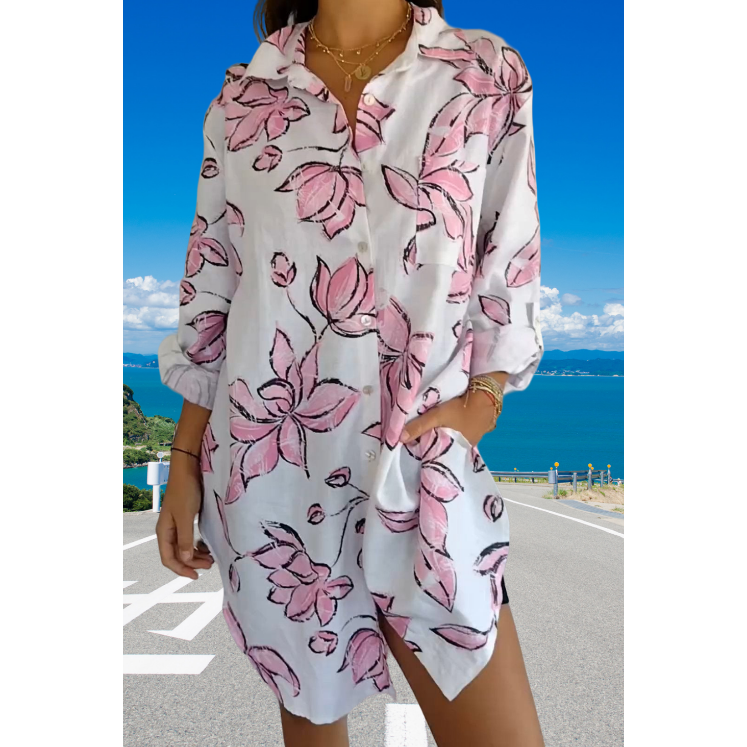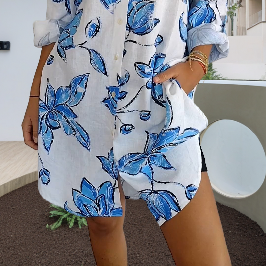 A csomag tartalma: 1*Női nyári lenvászon ing ruha nyomtatással