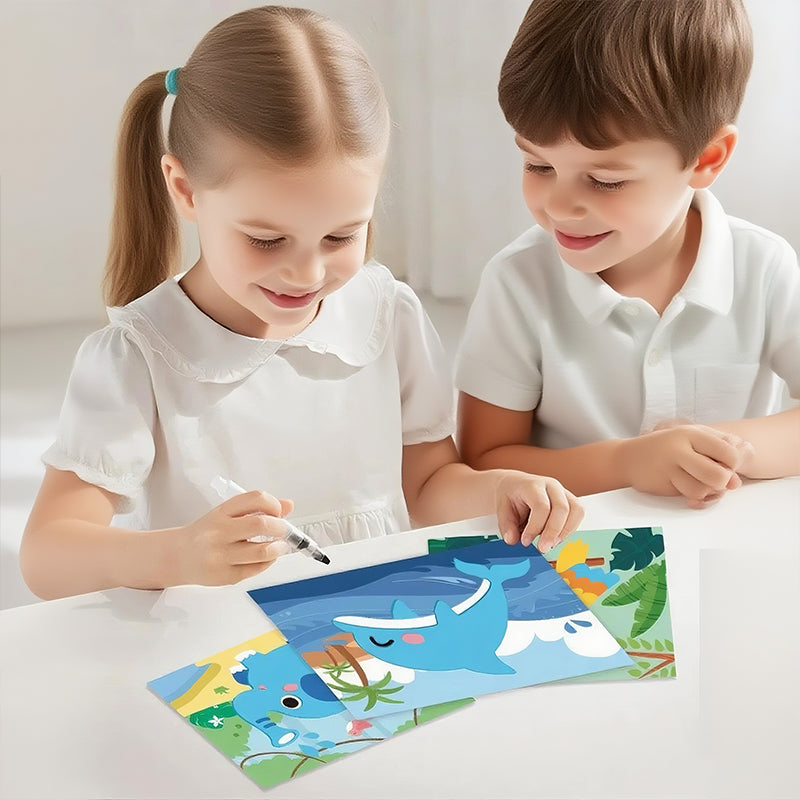 KÉTOLDALAS HASZNÁLAT: Az egyik oldala 3D-s habformák ragasztására, a hátsó oldala színezésre szolgál, segítve a gyerekeket a színfelismerés, a művészi érzék és a fantáziadús kifejezés fejlesztésében.