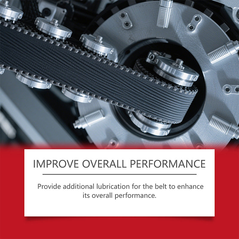 MEGSZÜNTETI A ZAVARÓ ÖVCSIKORGÁST – Fejlett formulánk azonnal megállítja a száraz vagy kopott övek által okozott csikorgást és nyikorgást. Számos övtípuson hatékony, csendes működést biztosít anélkül, hogy szétszerelésre lenne szükség.